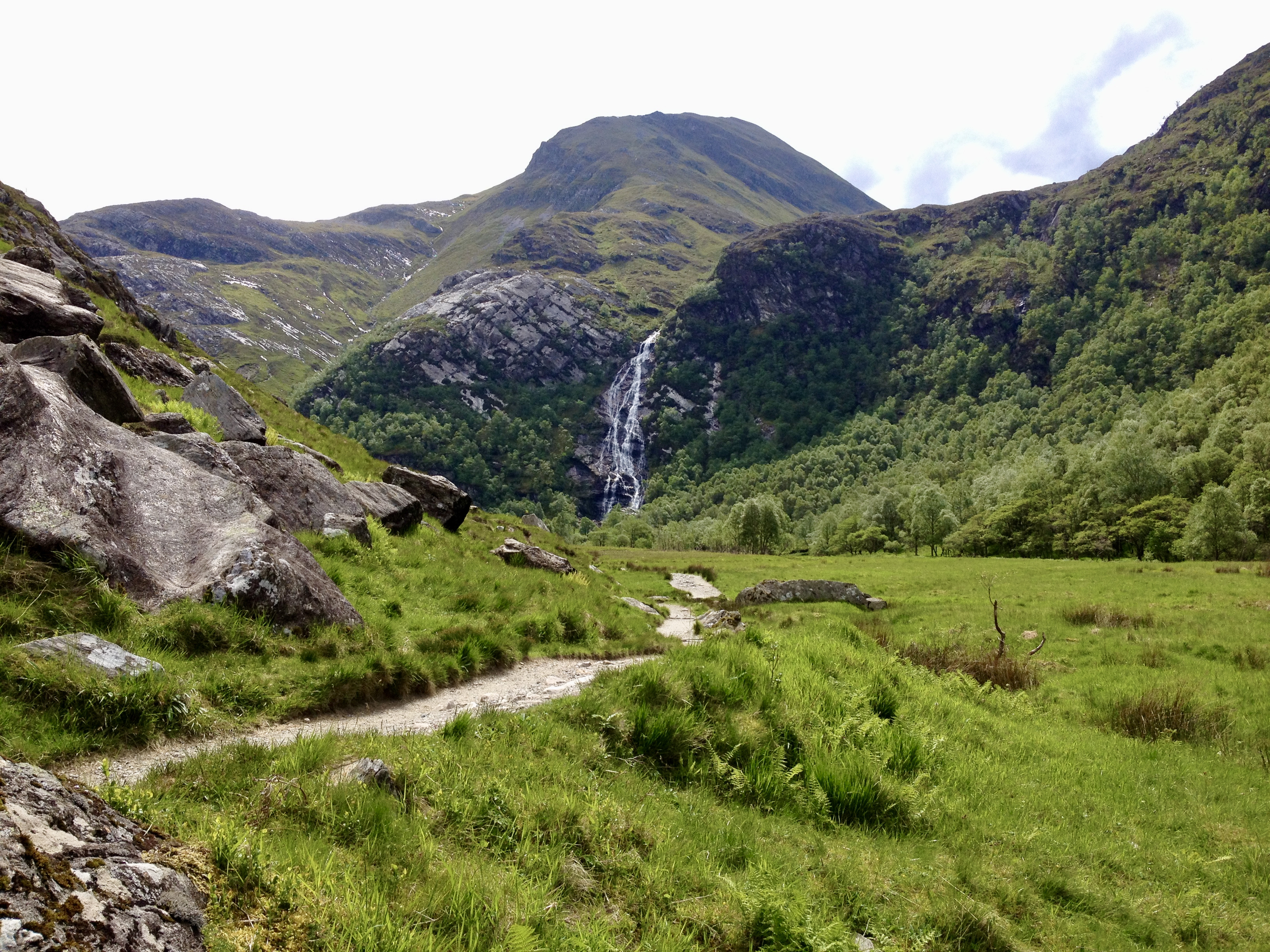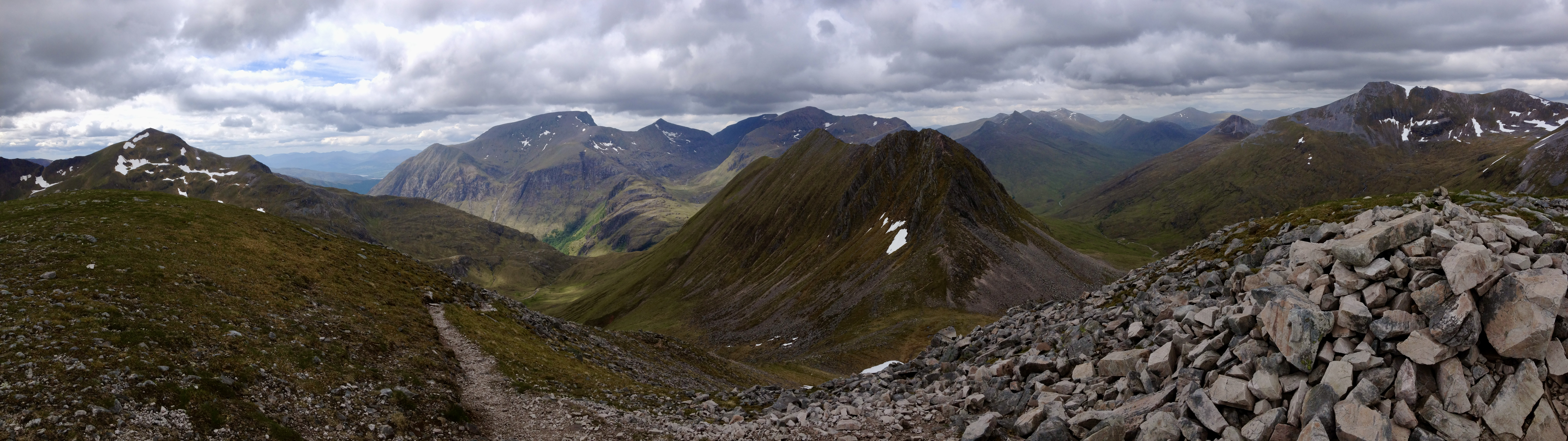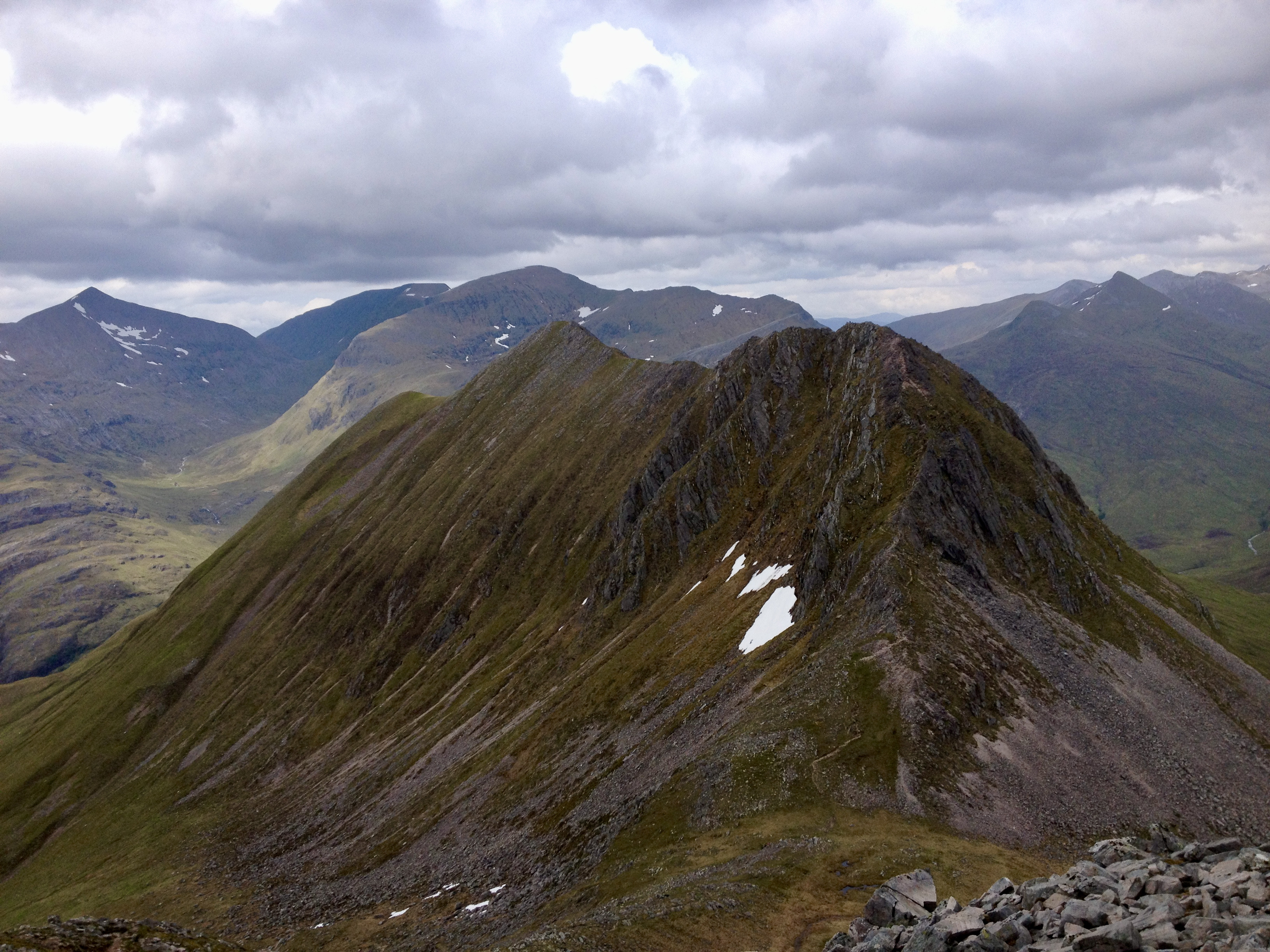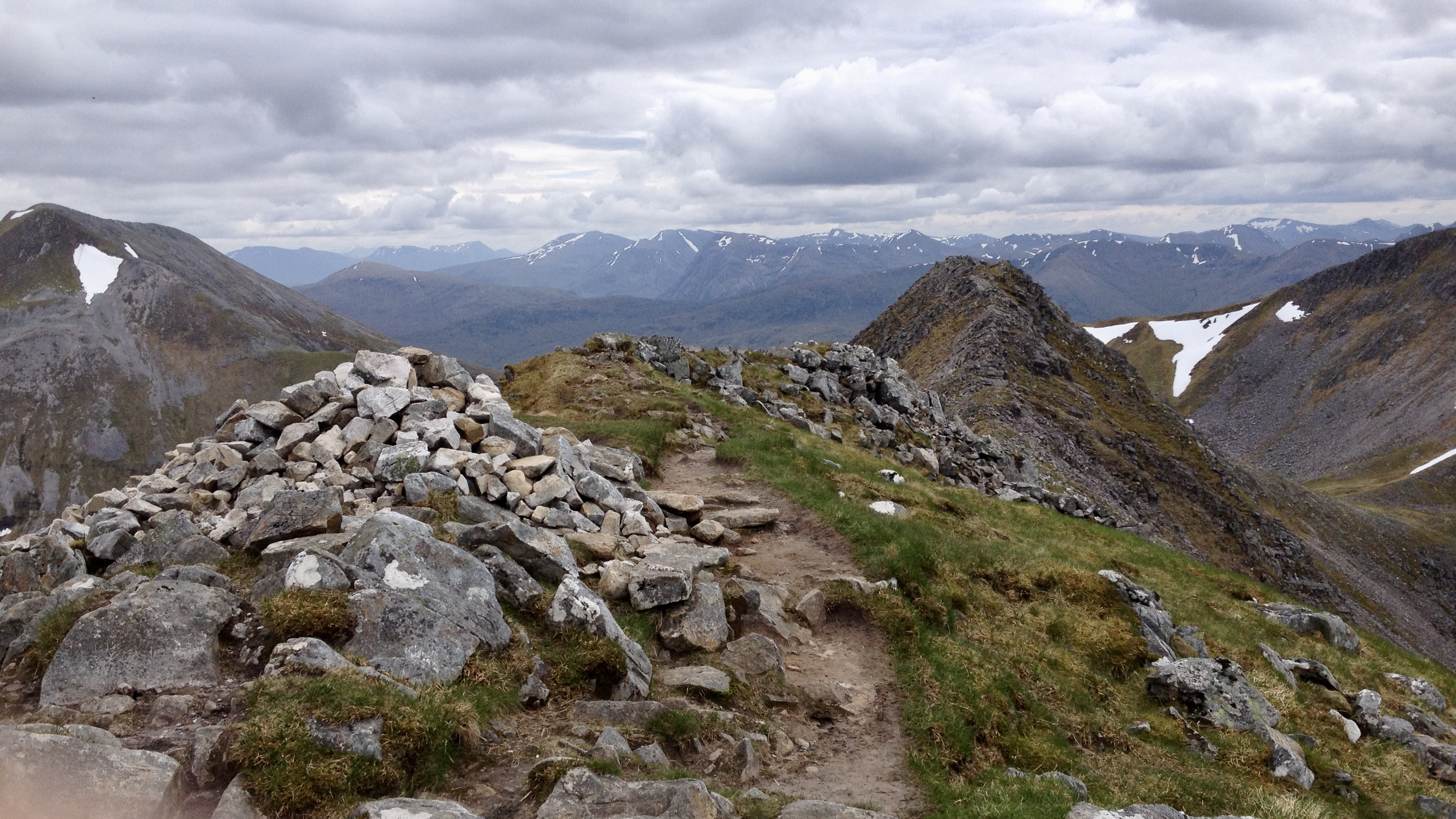 The connoisseur’s route from Glen Nevis campsite turns left at the ‘Halfway Lochan’ and contours round beneath the north face of Ben Nevis. It looks an entirely different mountain from this angle, and the walker’s route involving staggering up the steep ground onto Càrn Mòr Dearg, from where the view is really quite good (if it’s clear, as it was for us). From here, the CMD arête is surely the finest way to approach the highest ground in the UK. Not content with that, we started the Ring of Steall the next day but had to turn back just before the half way point due to walking boot (and knee) failure. But we did have a close encounter with a ptarmigan.