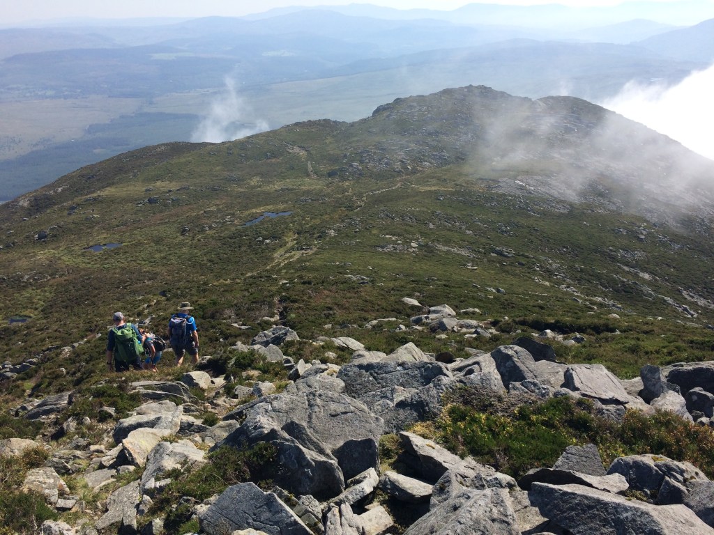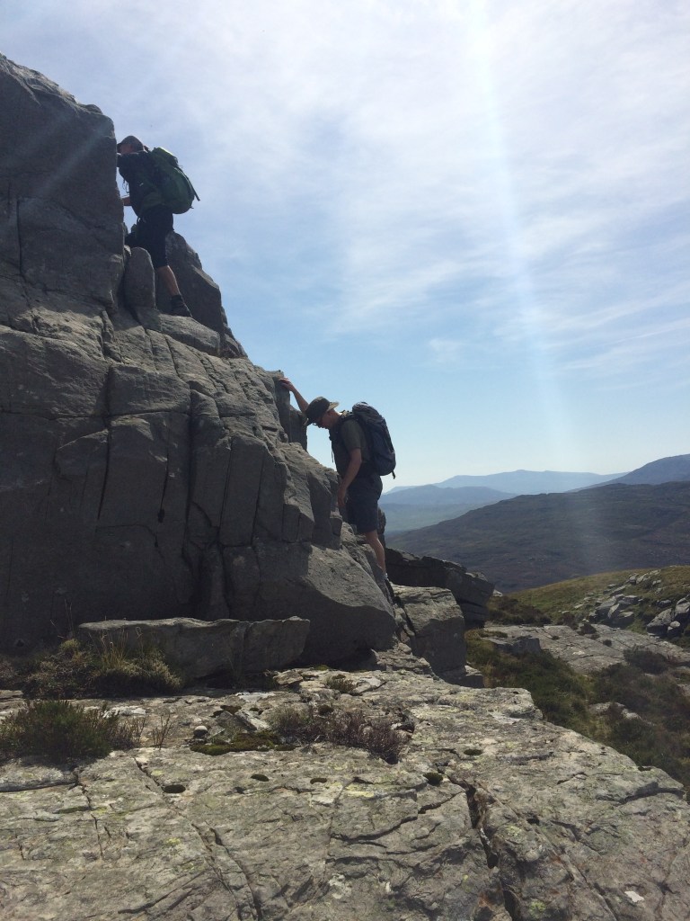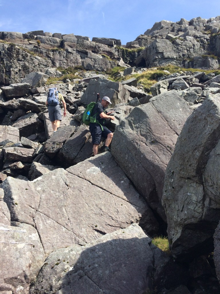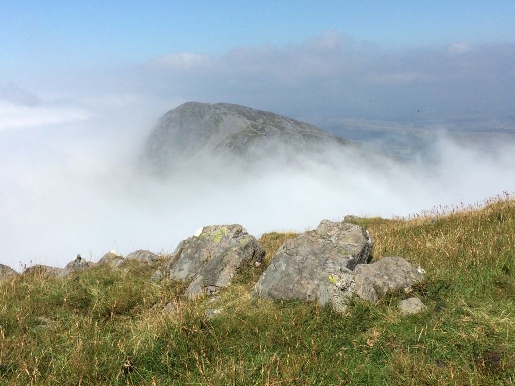 The aim was simple. Most of us had never been to this bit of North Wales before, so we wanted to see it all in a single weekend. Day 1 was a beautiful sunny day and we headed for the northern end of the range. Very rough walking through the glaciated landscape took us to Moel Ysgyfarnogod and Foel Penolau. The descent off Clip on the return was treacherous. There was a lot of cloud around on Day 2. These are supposedly the toughest mountains in Wales and our lengthy route took us over the summits of Rhinog Fawr, Rhinog Fach, Y Llethr and Diffwys. We were aided by the route-finding knowledge of one member who had recently completed the Dragon’s Back ultra-running race.