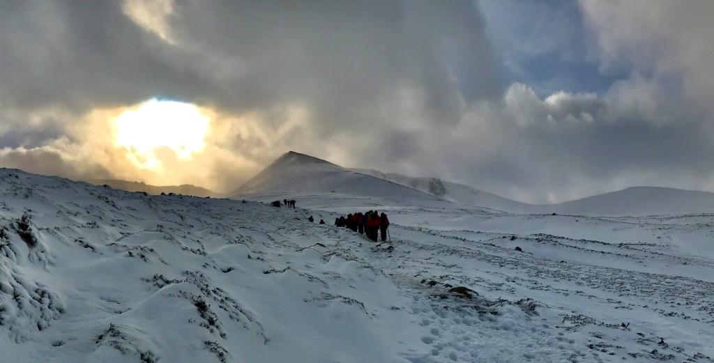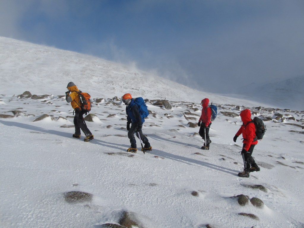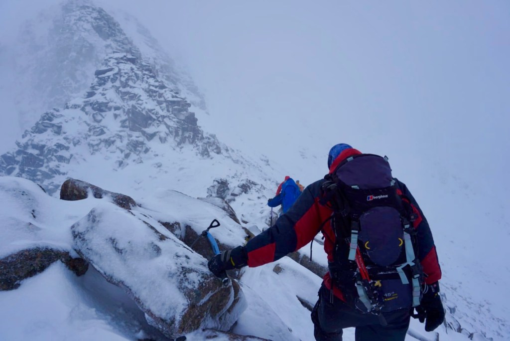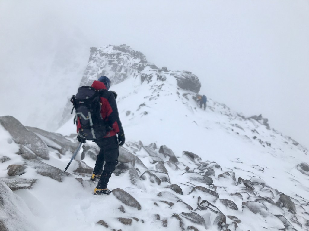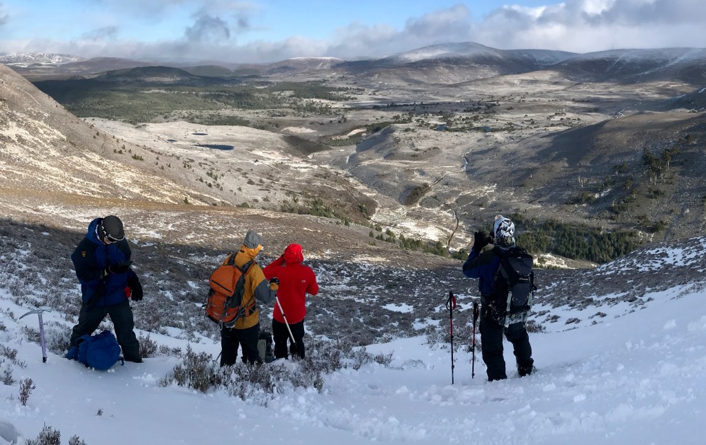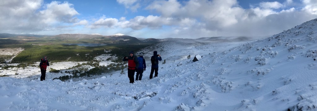 The annual winter trip of 2020 was based just outside Aviemore. The snow conditions were good, although it was extremely windy all week and we did get beaten back off the Fiacaill Ridge on one day out. Highlights included reaching the summit of Cairn Gorm in wild weather and a lovely route on the Meall a’ Bhuachaille circuit.