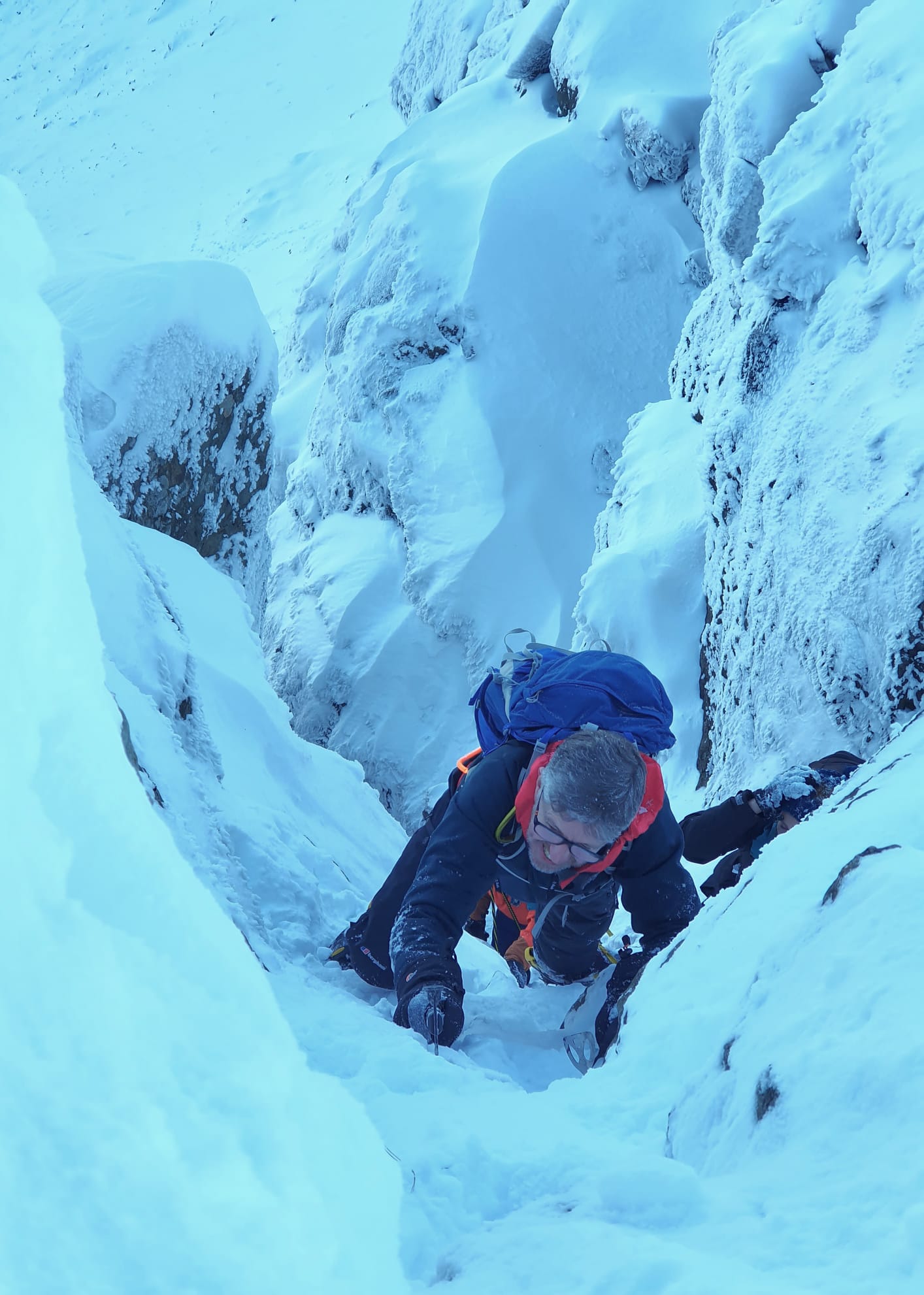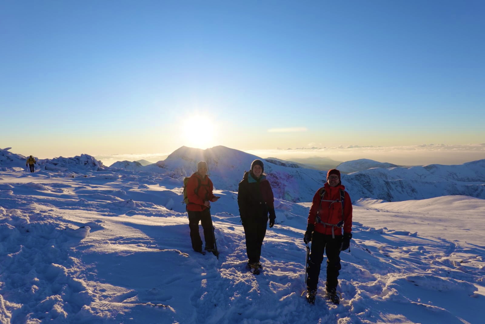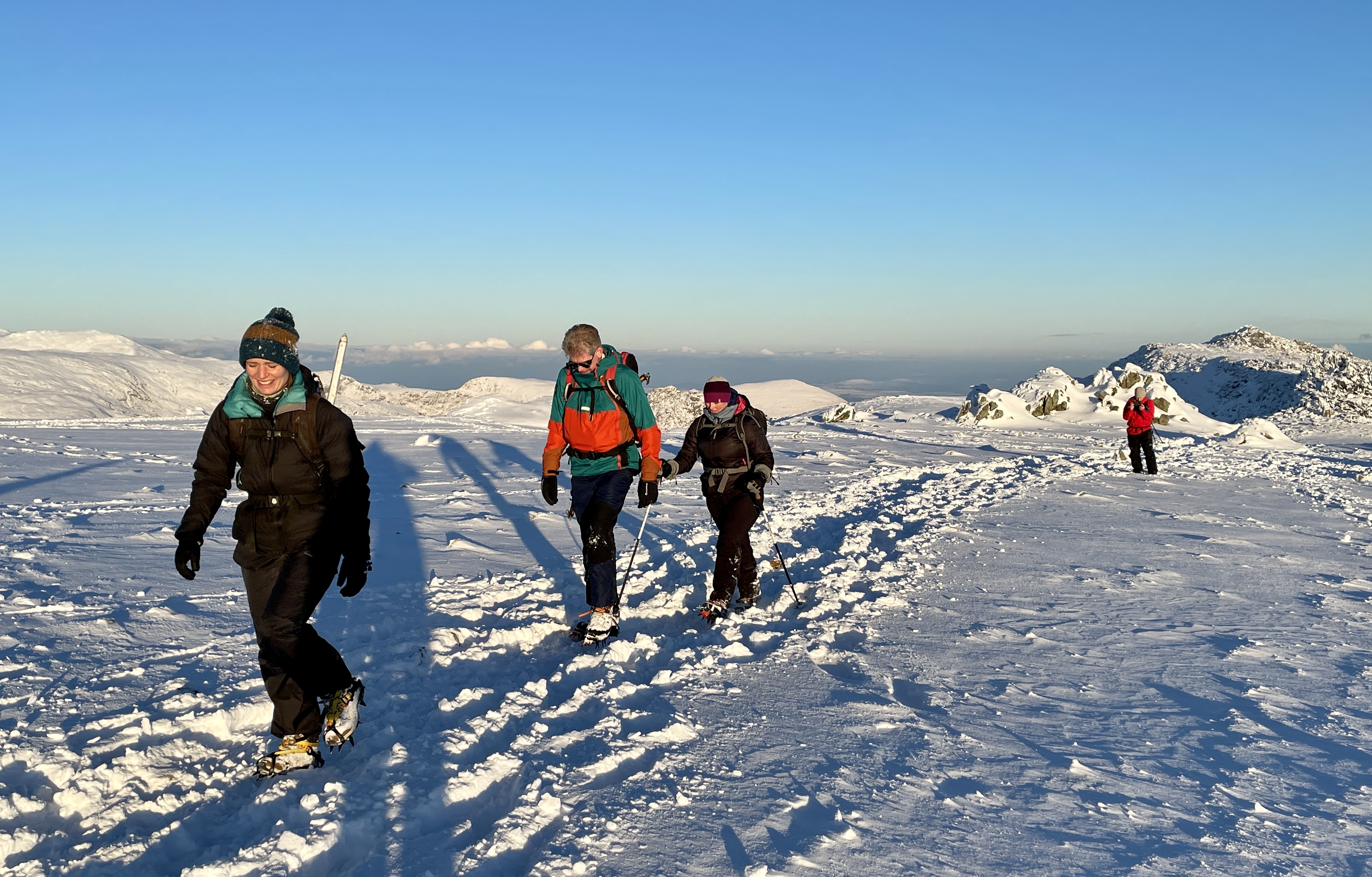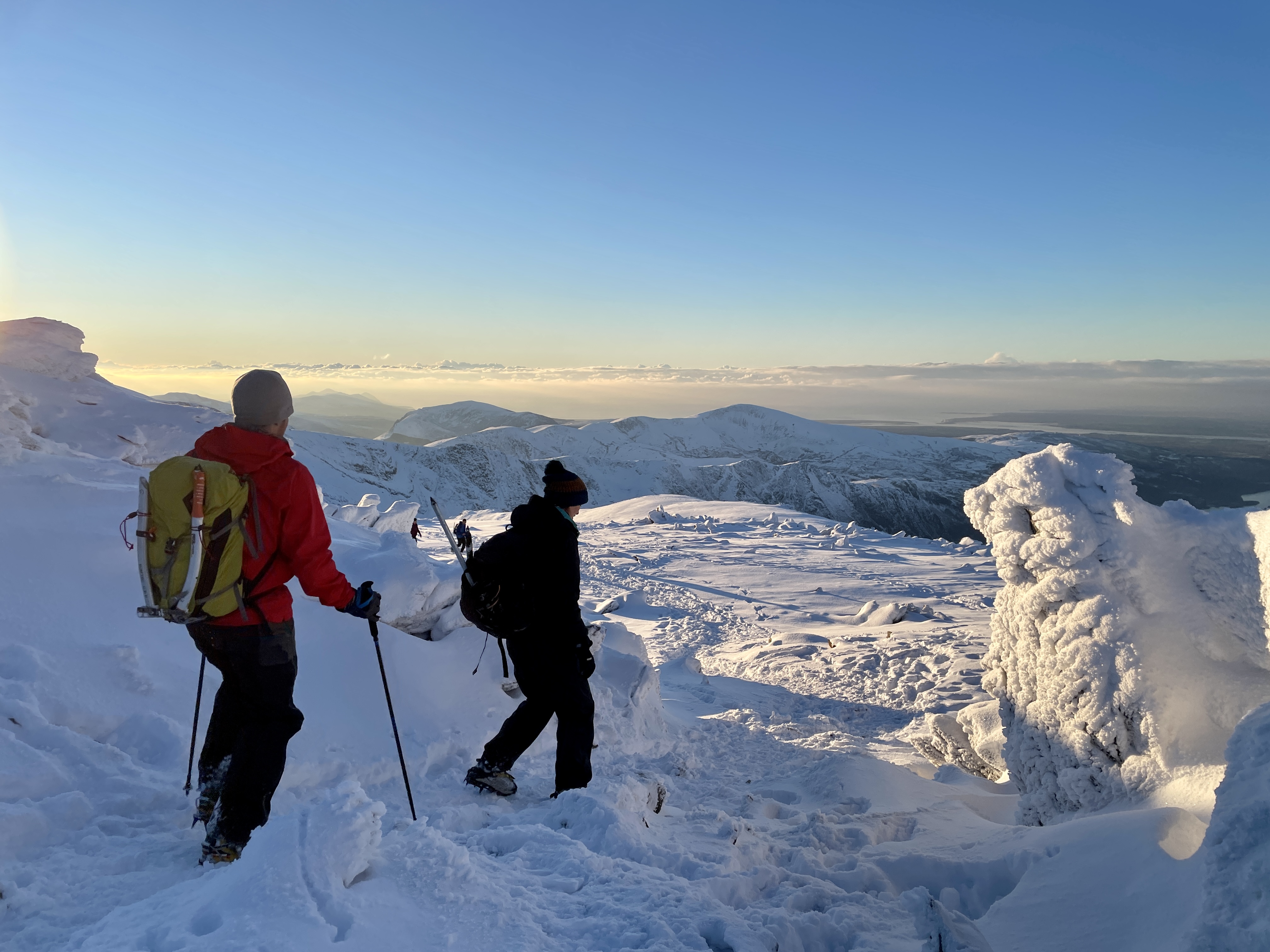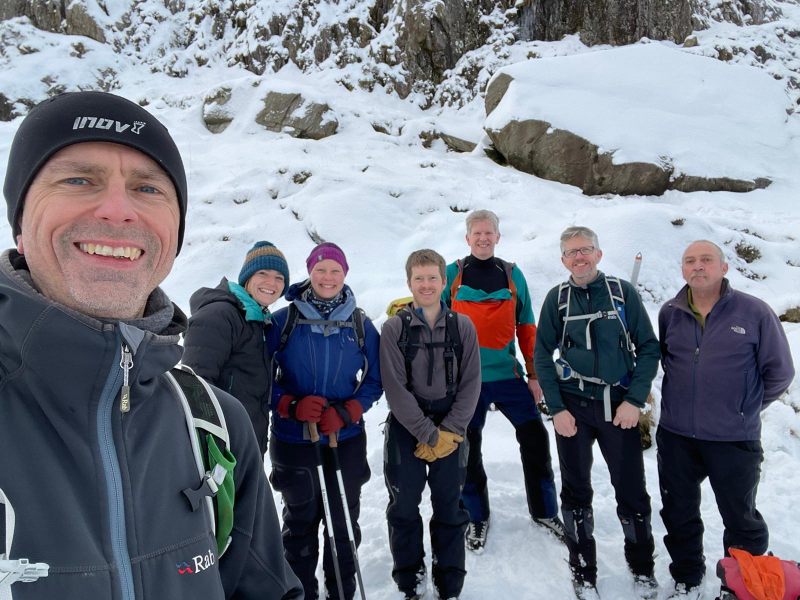Every year MMC heads to Snowdonia in late November / early December for the most popular trip on the calendar. The 2022 edition was a real treat with spectacular winter conditions and perfect weather. Their base was the Snowdonia Mountain Hostel near Bethesda and Saturday’s walk took them up onto the lesser-travelled northern end of the Glyderau before returning to base for a huge Christmas dinner. Sunday’s weather was even better, and a climb up onto Glyder Fawr via Seniors Gully and Hidden Gully provided a fantastic first winter experience for some.