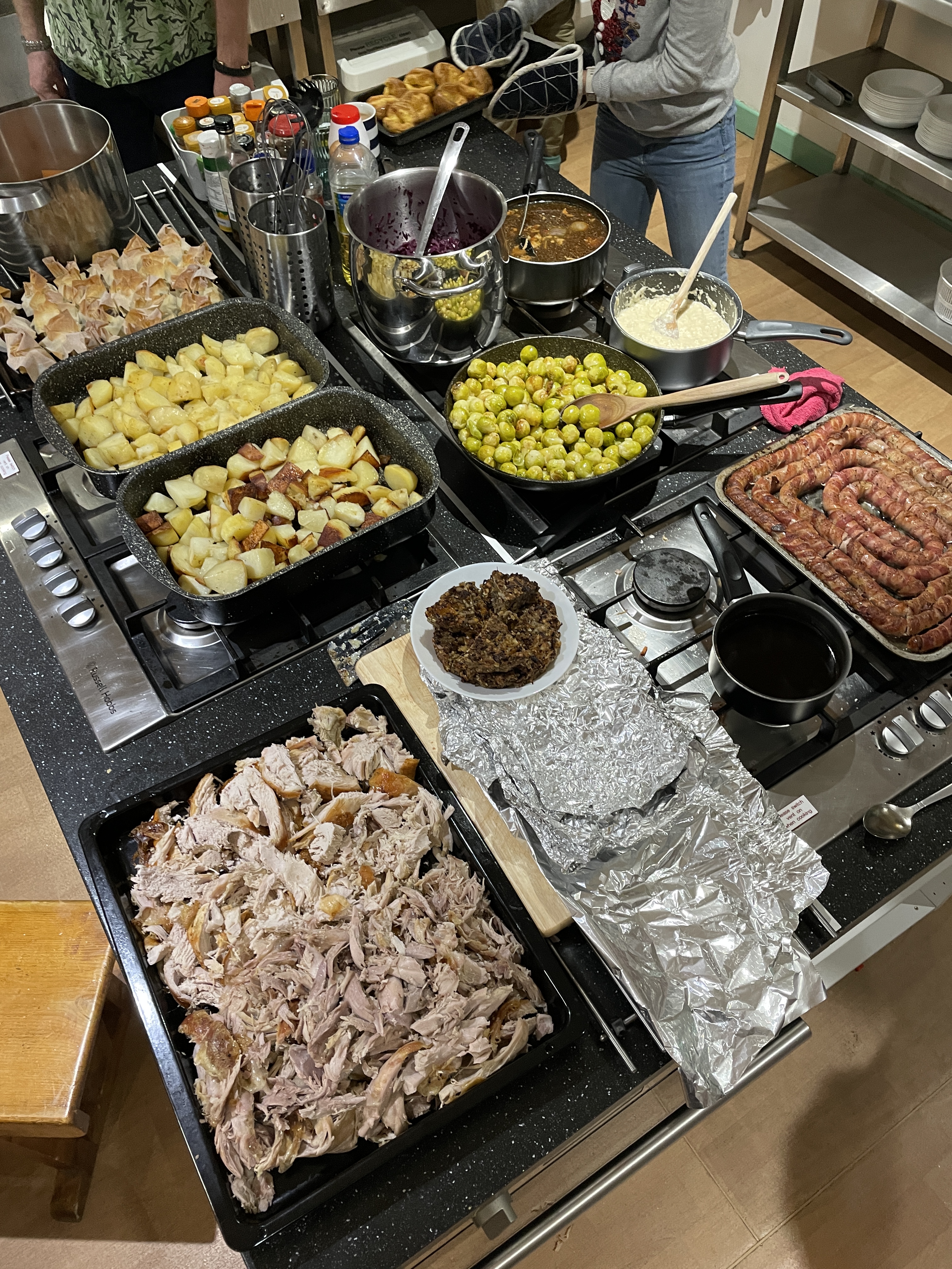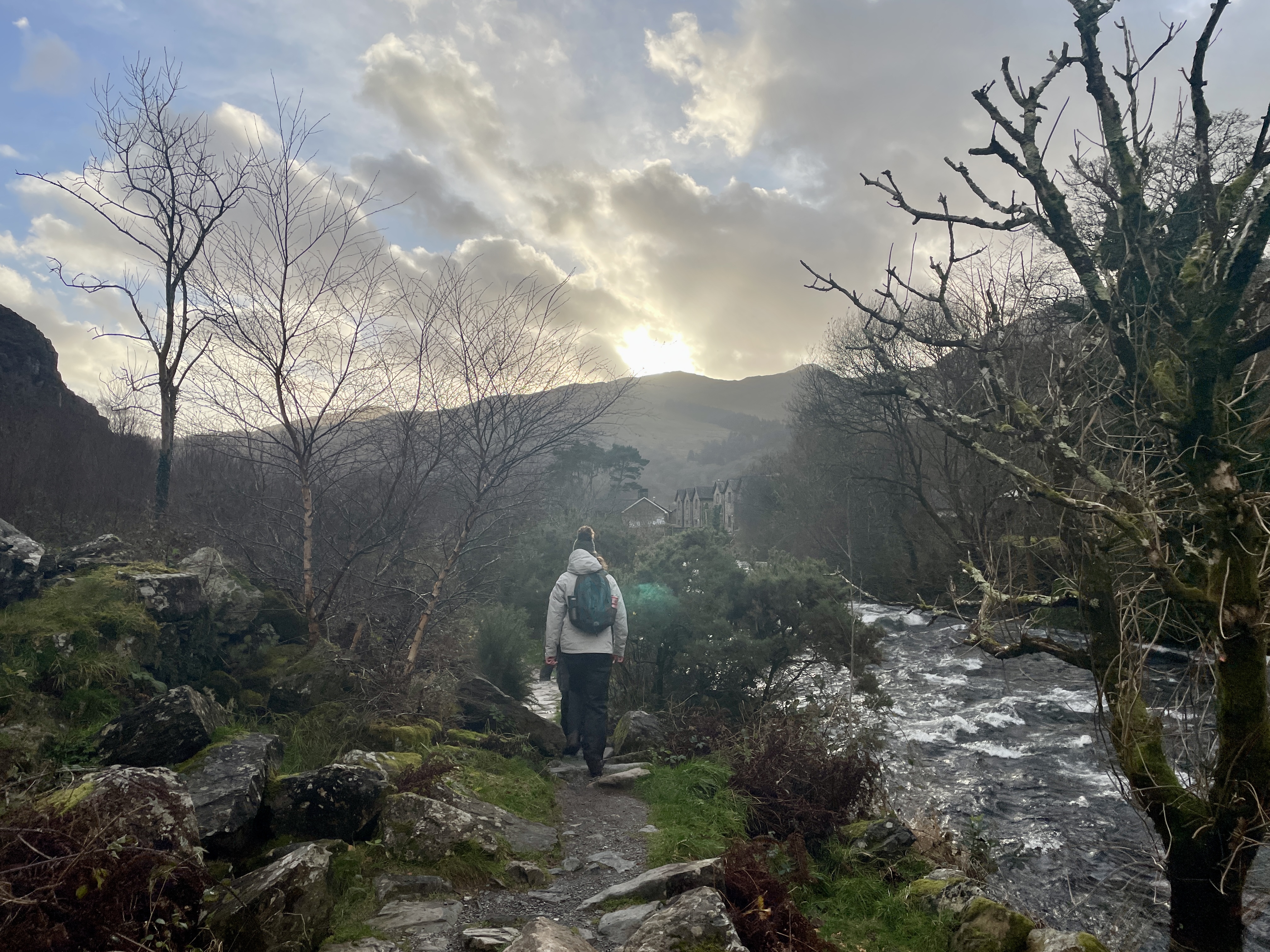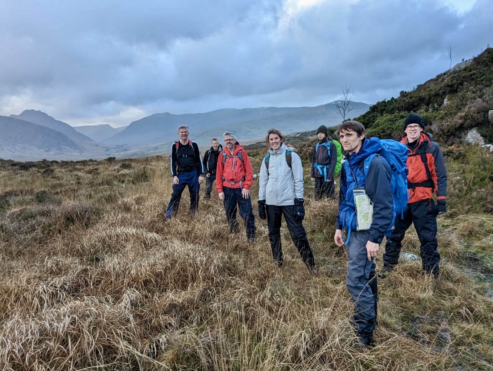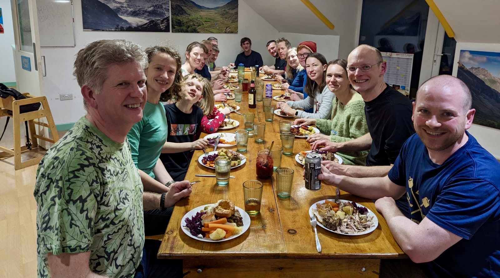 The 2023 Christmas trip saw us return to the Snowdonia Mountain Hostel in Nant Ffrancon with record numbers! Typical December weather (i.e. quite a lot of rain) led to some careful choices of timing and activities, with no less than four different options on Saturday. Those who were most prepared to battle the elements walked the whole ridge above the hostel – from Carnedd y Filiast to Y Garn. A little lower down, but not much less windy, there was some exploring around Dinorwig quarries and Cwm Idwal. The largest group set out around the Cwm Bychan and Fisherman’s Path loop, including an out-and-back to Moel y Dyniewyd for an obligatory summit, a surprise cave and the raging waters of the Afon Glaslyn. Everyone was back in time for the traditional Christmas feast and the newly elected social secretary’s evening entertainment.