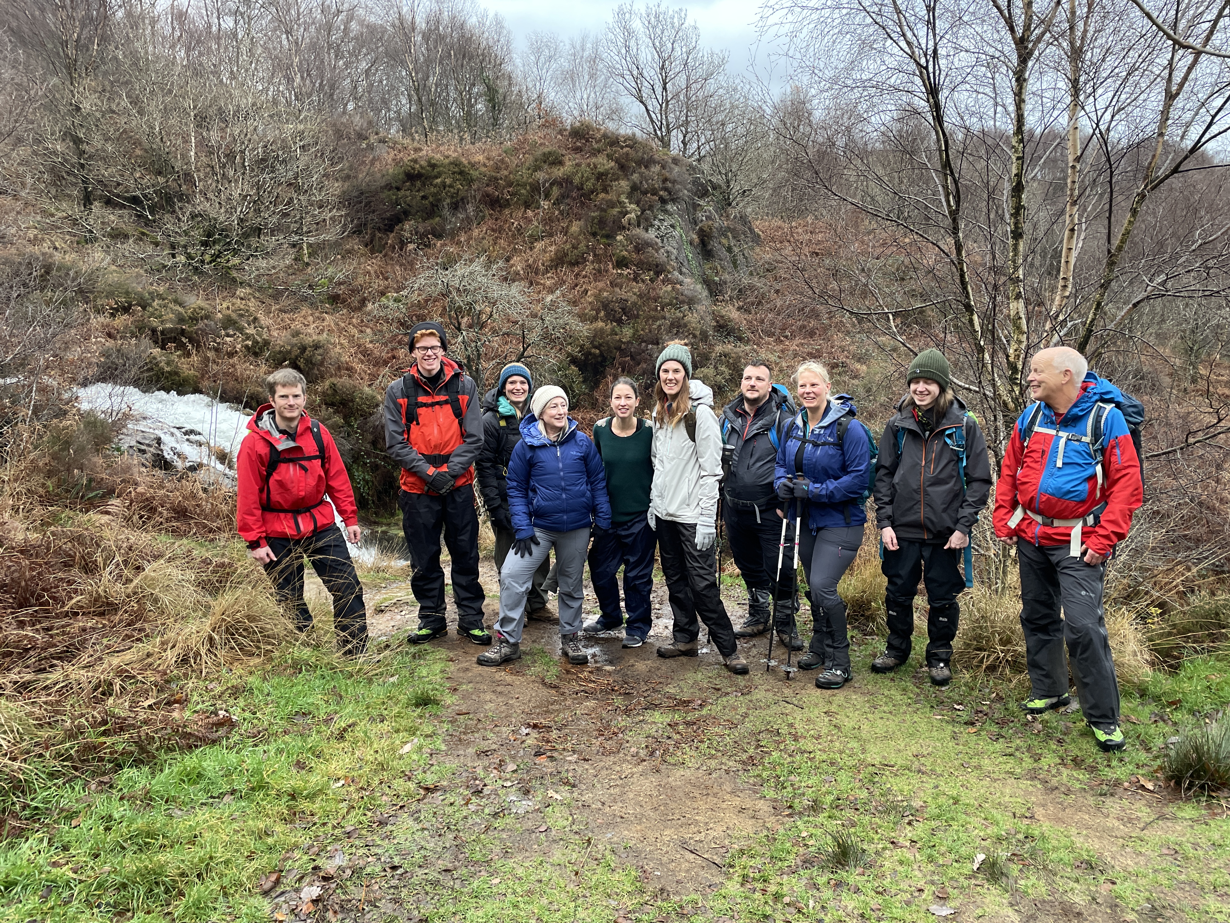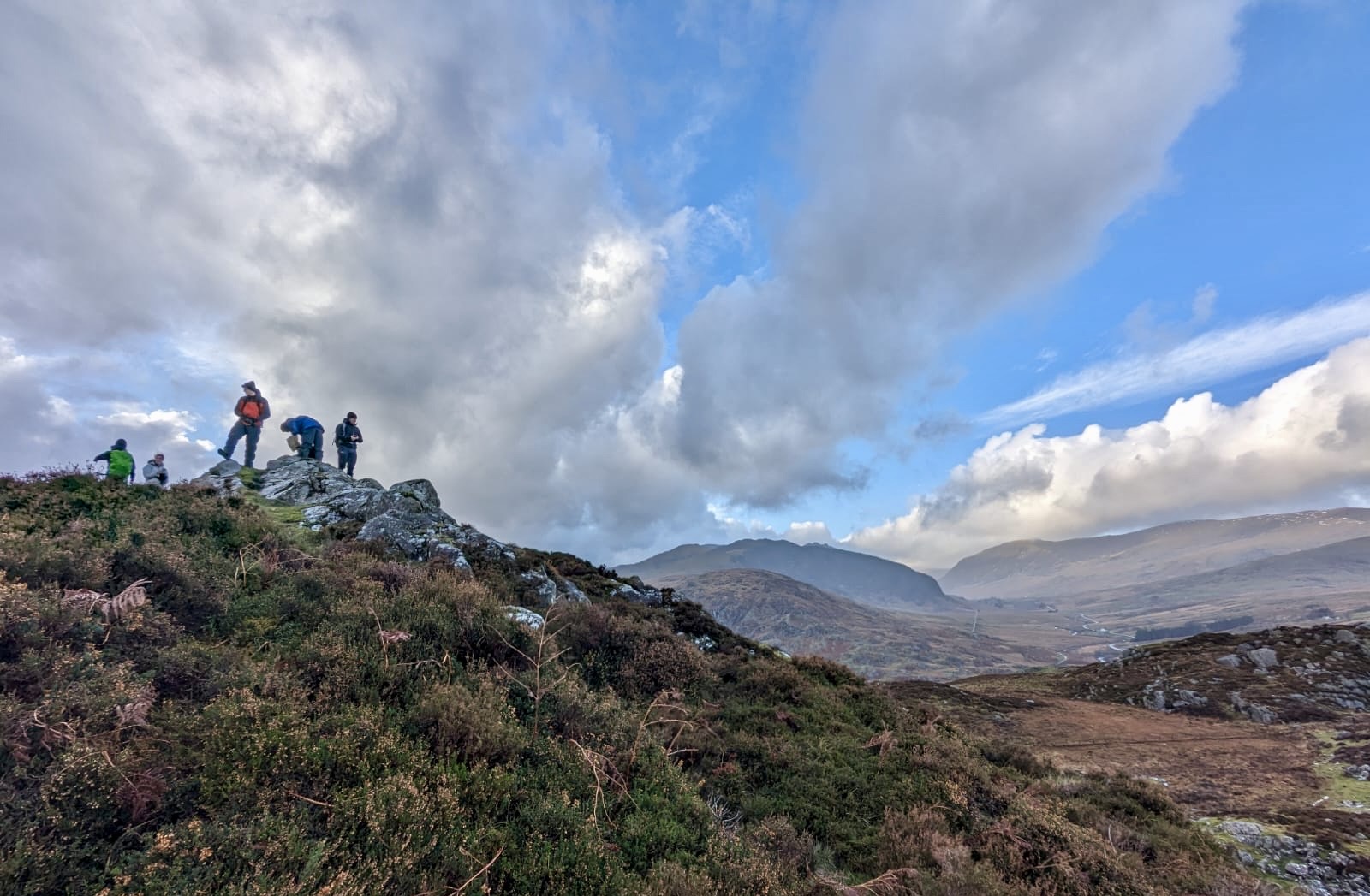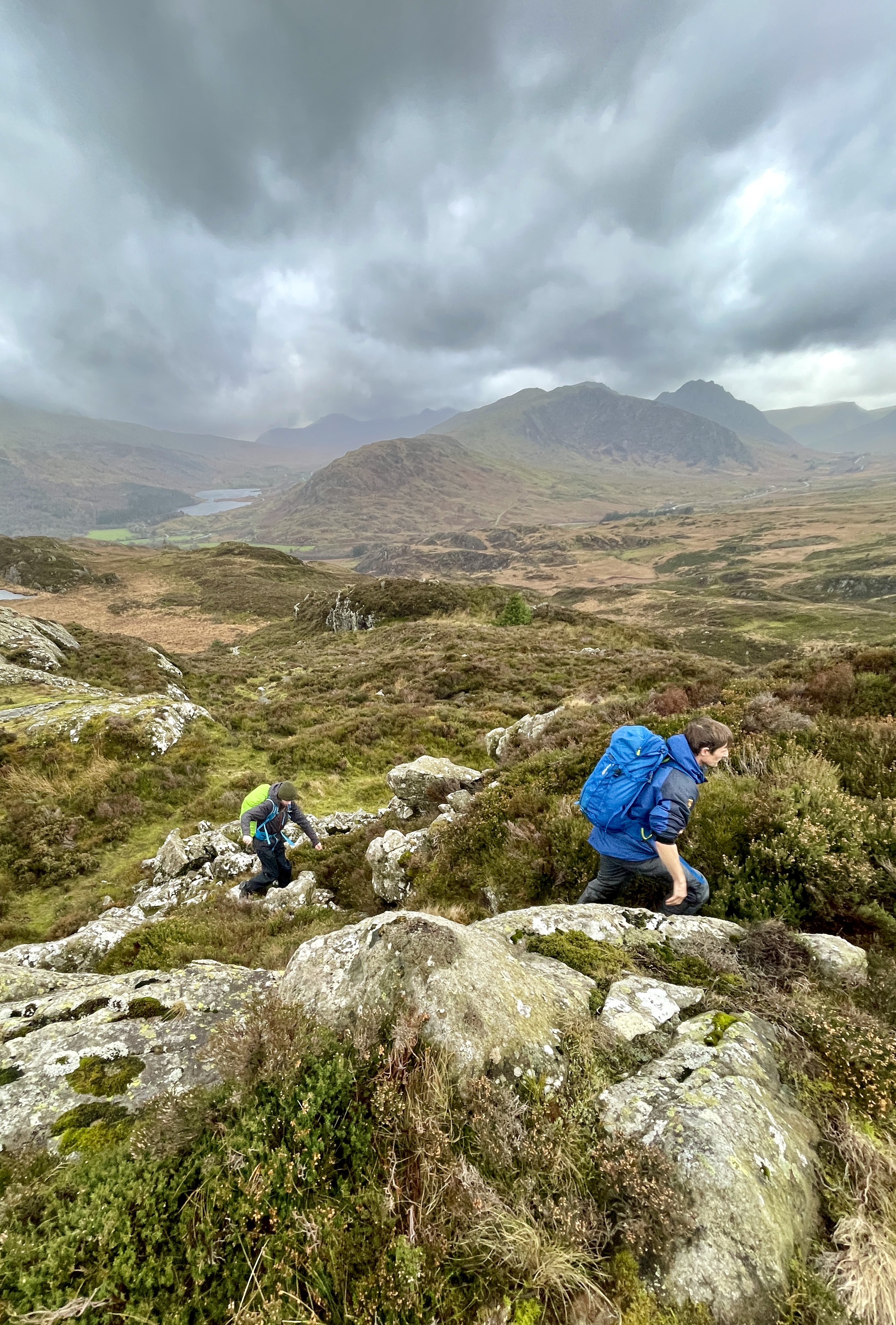 Sunday started with a huge breakfast and a long wait for the torrential rain to pass through. A short but tough walk over ‘the knobbly bits’ near Capel Curig ensued, reaching the excellent viewpoints of Crimpiau and Craig Wen, and finishing as dusk fell. Those who wanted more than just wet feet sought out wild swimming opportunities instead.