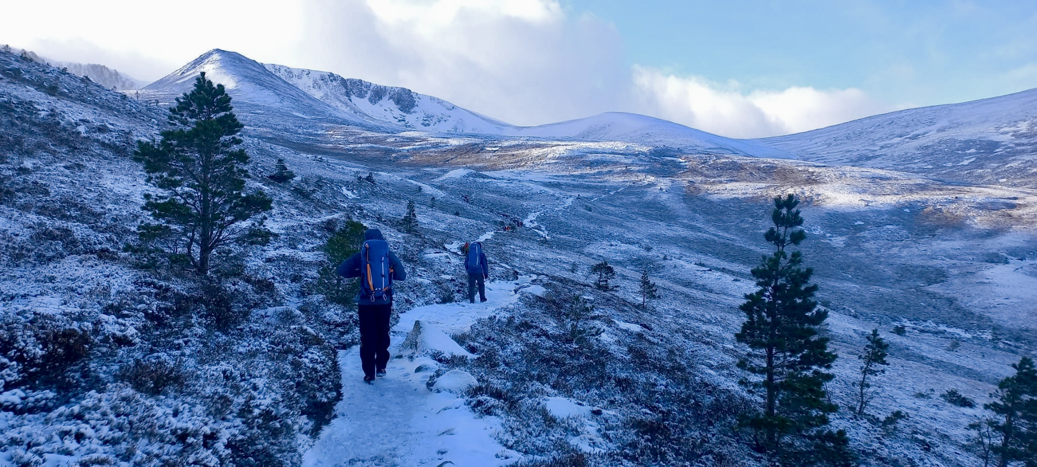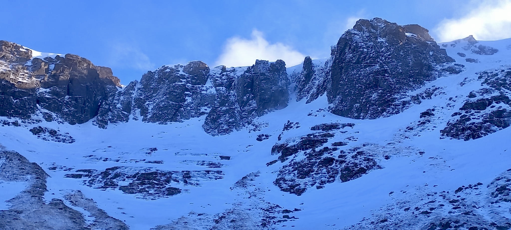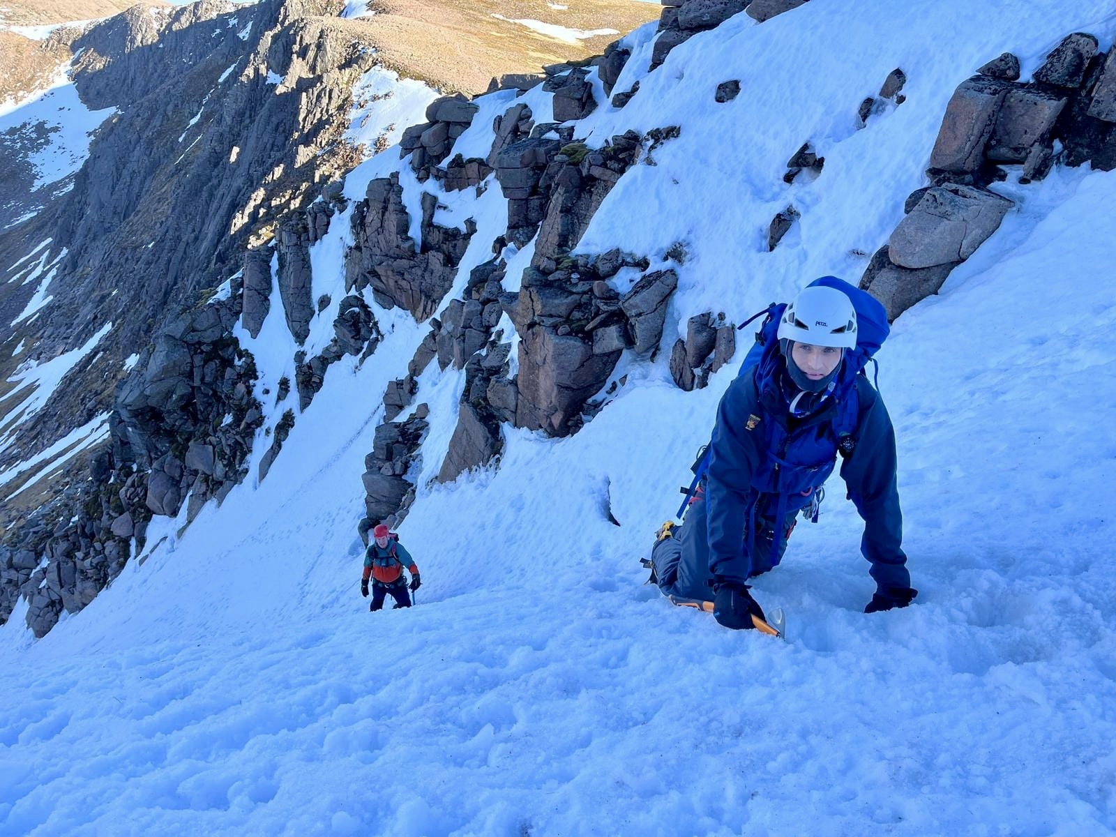 Three of the club spent a week in the Cairgorms staying in a lovely place in Aviemore, and playing in the little snow there was. The weather at the beginning of the week was rather mild, with the top of the plateau being snow and ice free, however we managed to find some snow in the gullies, doing Aladdin’s Couloir in Corrie an t-Sneachda, as well as taking the rope and rack for a walk. Mid-week saw a change in the weather with a windy day ahead of some snow and a drop in temperatures, so a low level forest walk complete with rainbows was in order (as well as some gear shopping). With the colder weather we managed to do a short ice climbing pitch as well as practice snow anchors, and complete Jacob’s Ladder gully. A good week of winter mountaineering despite the effects of climate change!
