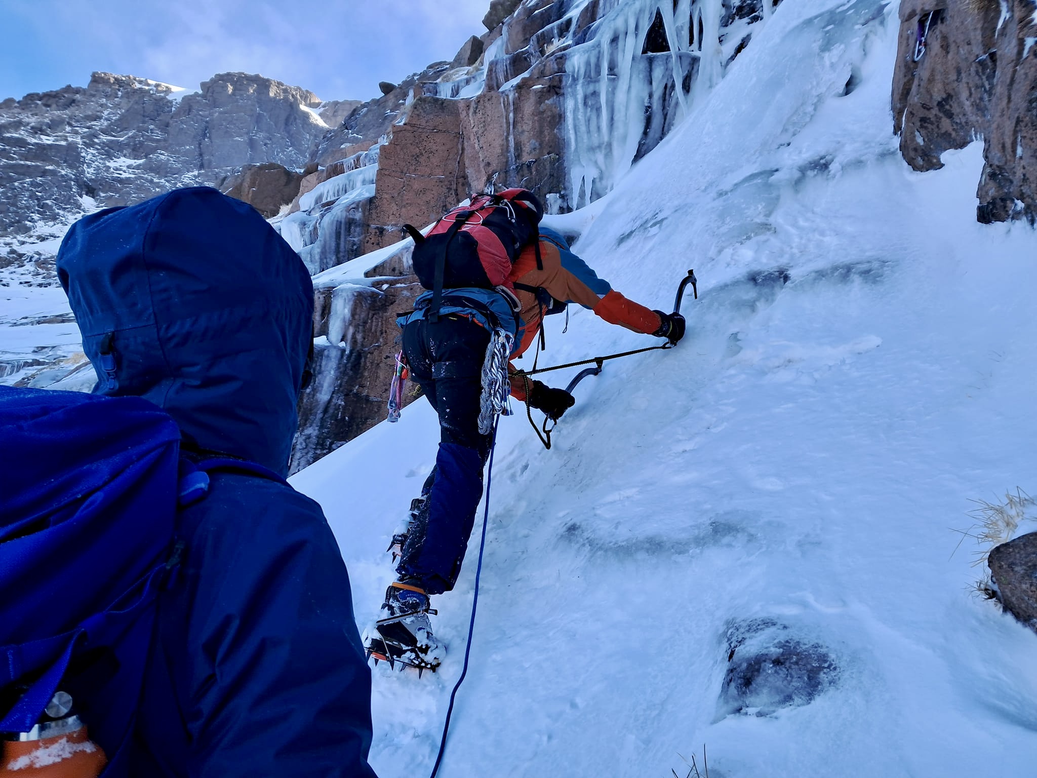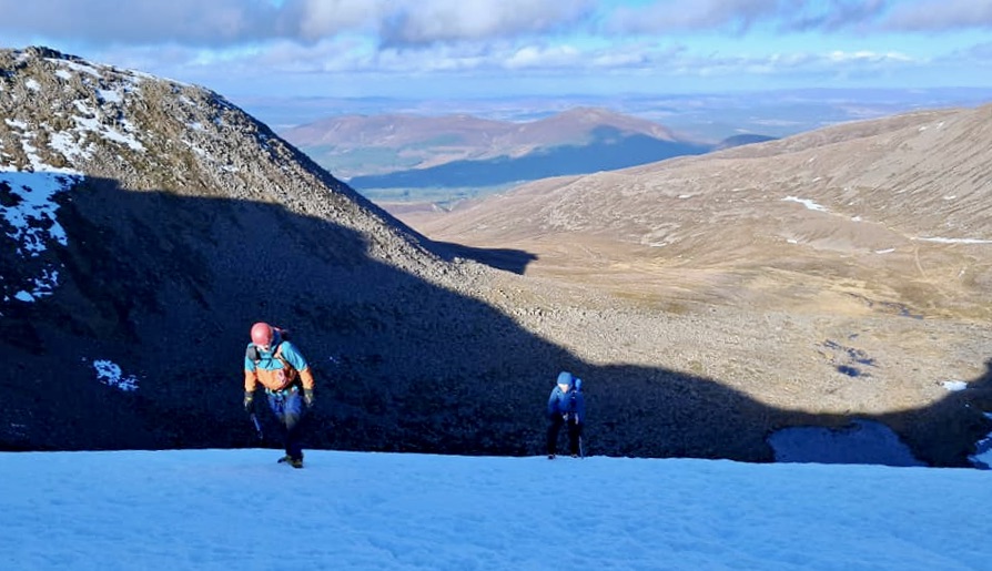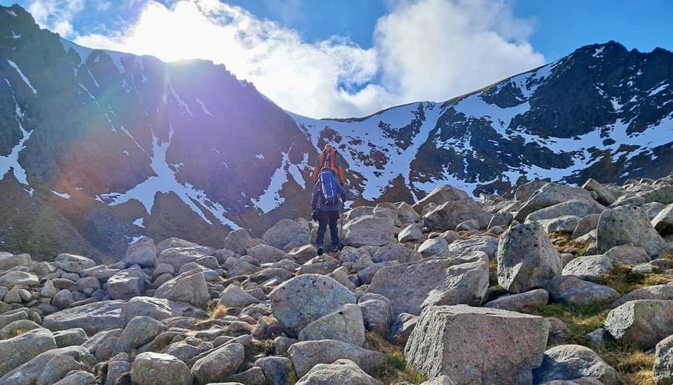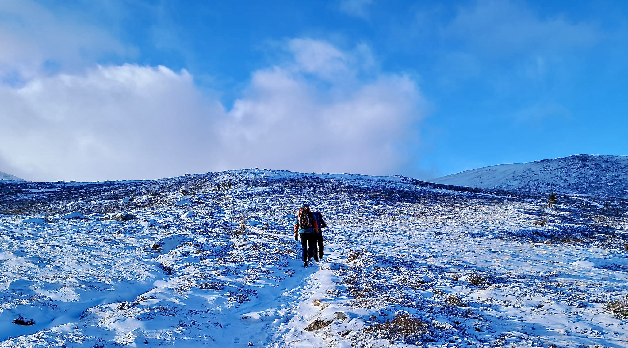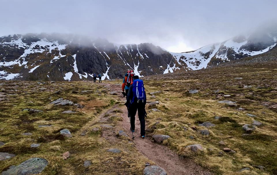 Three of the club spent a week in the Cairgorms staying in a lovely place in Aviemore, and playing in the little snow there was. The weather at the beginning of the week was rather mild, with the top of the plateau being snow and ice free, however we managed to find some snow in the gullies, doing Aladdin’s Couloir in Corrie an t-Sneachda, as well as taking the rope and rack for a walk. Mid-week saw a change in the weather with a windy day ahead of some snow and a drop in temperatures, so a low level forest walk complete with rainbows was in order (as well as some gear shopping). With the colder weather we managed to do a short ice climbing pitch as well as practice snow anchors, and complete Jacob’s Ladder gully. A good week of winter mountaineering despite the effects of climate change!