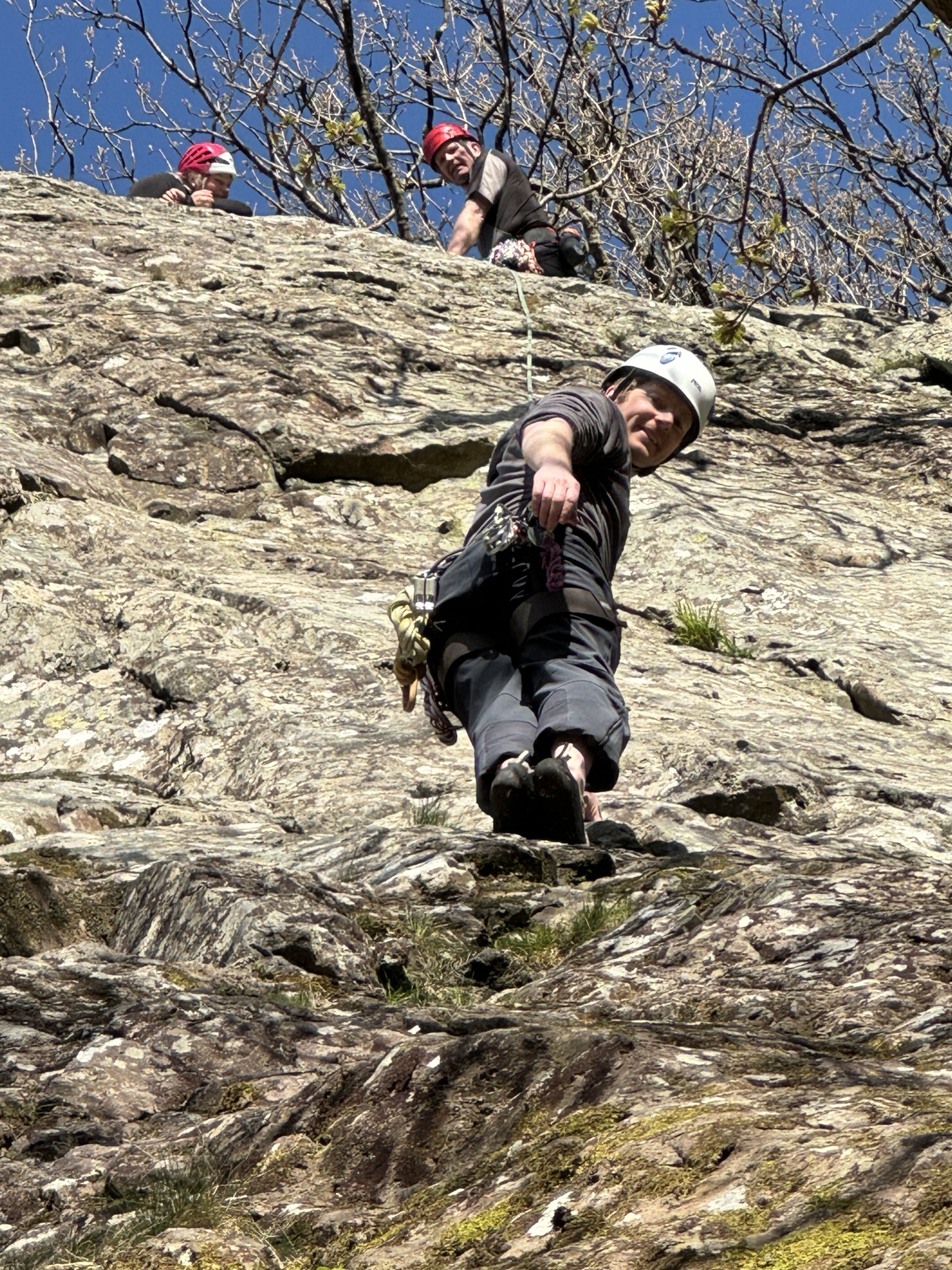 This trip was put on to introduce people to outdoor climbing and the venue for Saturday was Borrowdale. After recent pretty miserable weather we were lucky to have a glorious day in the sunshine, and even the ground was far drier than expected. Excellent tutelage from the more experienced members of the group made for a very satisfying day out and a plan for St Sunday Crag the next day. However, the awful weather made a reappearance overnight so we escaped to the Howgill Fells for an enjoyable walk instead.